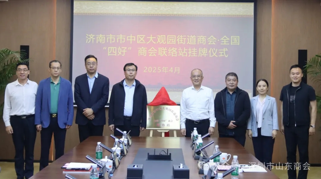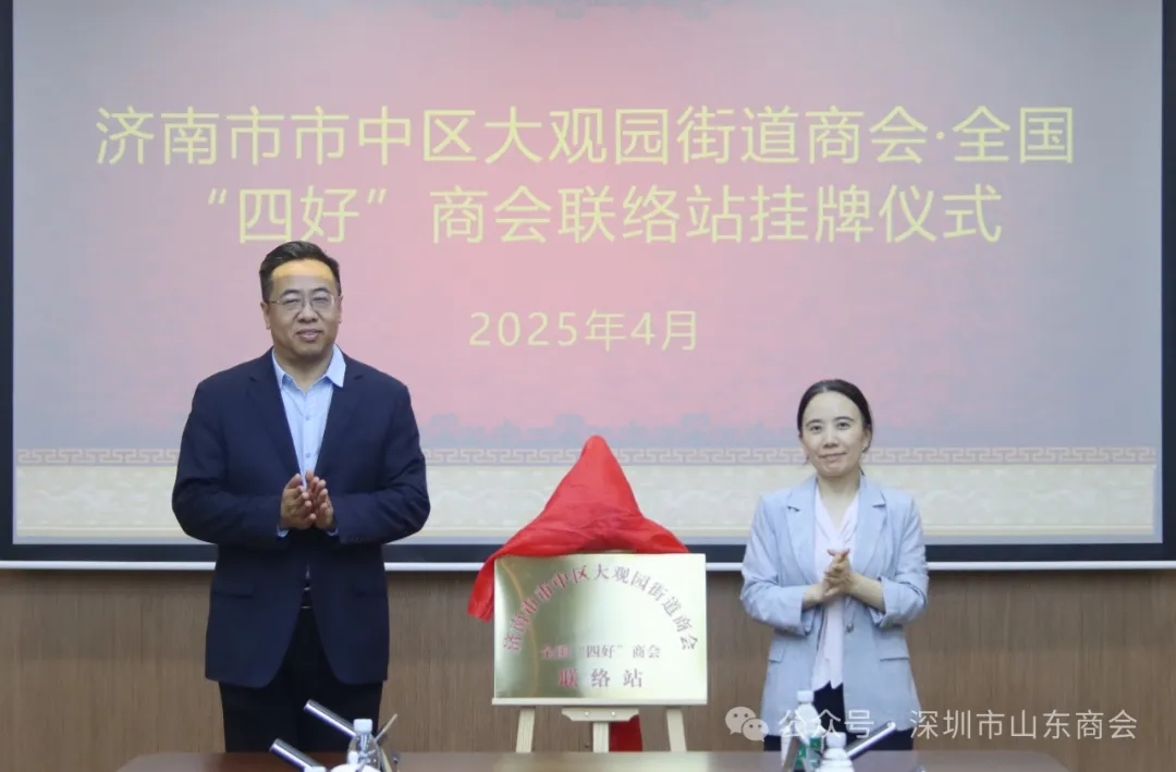 座谈会后,举行了济南市市中区大观园街道商会全国“四好”商会联络站挂牌仪式,为双方未来的合作奠定了坚实的基础。