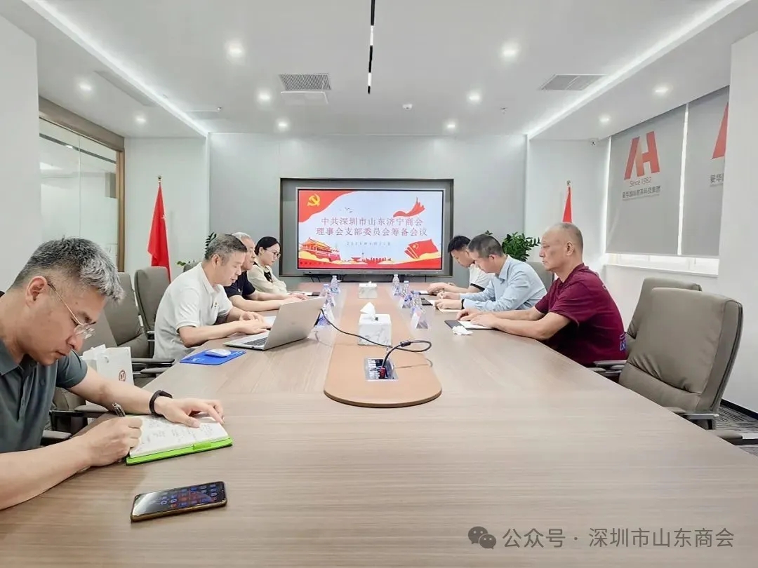 2025年4月22日,中共深圳市山东济宁商会理事会支部委员会成立大会在深圳爱华国际教育科技集团会议室隆重召开,会议圆满完成了理事会党支部成立工作,并产生了首届理事会党支部书记。党委党办主任张含增、党建组织员卫雨星出席会议指导,深圳市山东济宁商会执行会长闵令波、副会长王同勇、理事杨玉振3位正式党员及筹备组成员参加会议。