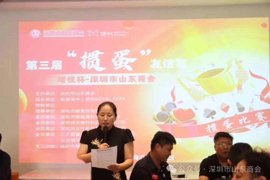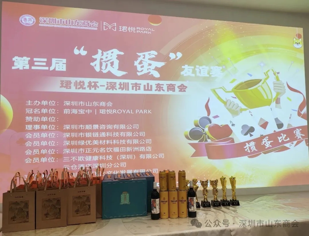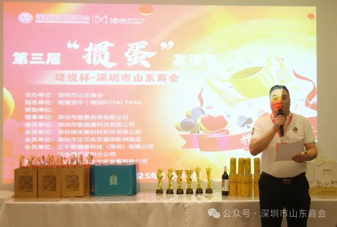 为丰富会员的文化生活,增进会员间团结协作与交流合作,营造积极向上的生活与工作氛围,展现会员企业家良好的精神风貌,2025年07月19日,“珺悦杯”第三届掼蛋友谊赛在深圳山东大厦成功举办。我会执行会长兼秘书长梁庆伟,执行会长杨利,副会长张捷、朱礼贵、王锴、马大鹏,执行秘书长兼办公室主任陈振永以及南山、福田、宝安光明、双龙、罗湖盐田大鹏联络处会员代表队等70余名掼蛋爱好者欢聚一堂、切磋技艺。活动由会员姜磊主持。