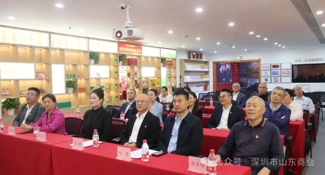 2025年11月18 日,党委联合临沂市驻粤流动党员党委共同开展深入学习贯彻党的二十届四中全会精神暨参观沂蒙精神展(大湾区)主题活动。通过理论解读、红色研学、艺术熏陶相结合的方式,推动党的创新理论落地生根,助力红色基因代代相传。活动中,党委副书记、会长王立新同志出席并专题解读党的二十届四中全会精神,临沂市驻粤流动党员党委书记、市政府驻广东联络处主任赵雷同志致欢迎辞,中央音乐学院高红教授受邀讲授红色艺术党课,山东商会党委8个支部,30余名党员代表共同参与此次党性教育实践。