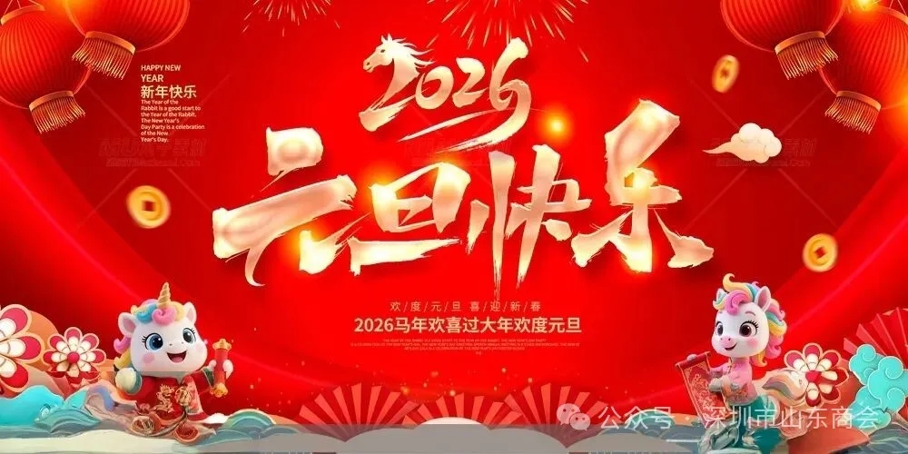 时序更替,华章日新。值此2026年元旦佳节来临之际,会长岳智飞携理事会向各位会员同仁、在深鲁籍乡贤,向长期关心支持商会发展的鲁深两地政府领导、社会各界友人,致以最诚挚的新年祝福和最美好的诚挚祝愿!