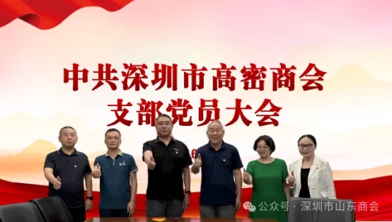 2025年6月11日下午,深圳市高密商会党支部在深圳市山东商会党委的指导下,召开了党员大会,选举产生第一届党支部书记。深圳市山东商会党办主任张含增同志、组织员卫雨星同志、深圳市高密商会监事长毛岩出席会议,深圳市高密商会副会长王德波,张清宝、张洪利等三位党员同志参加会议。