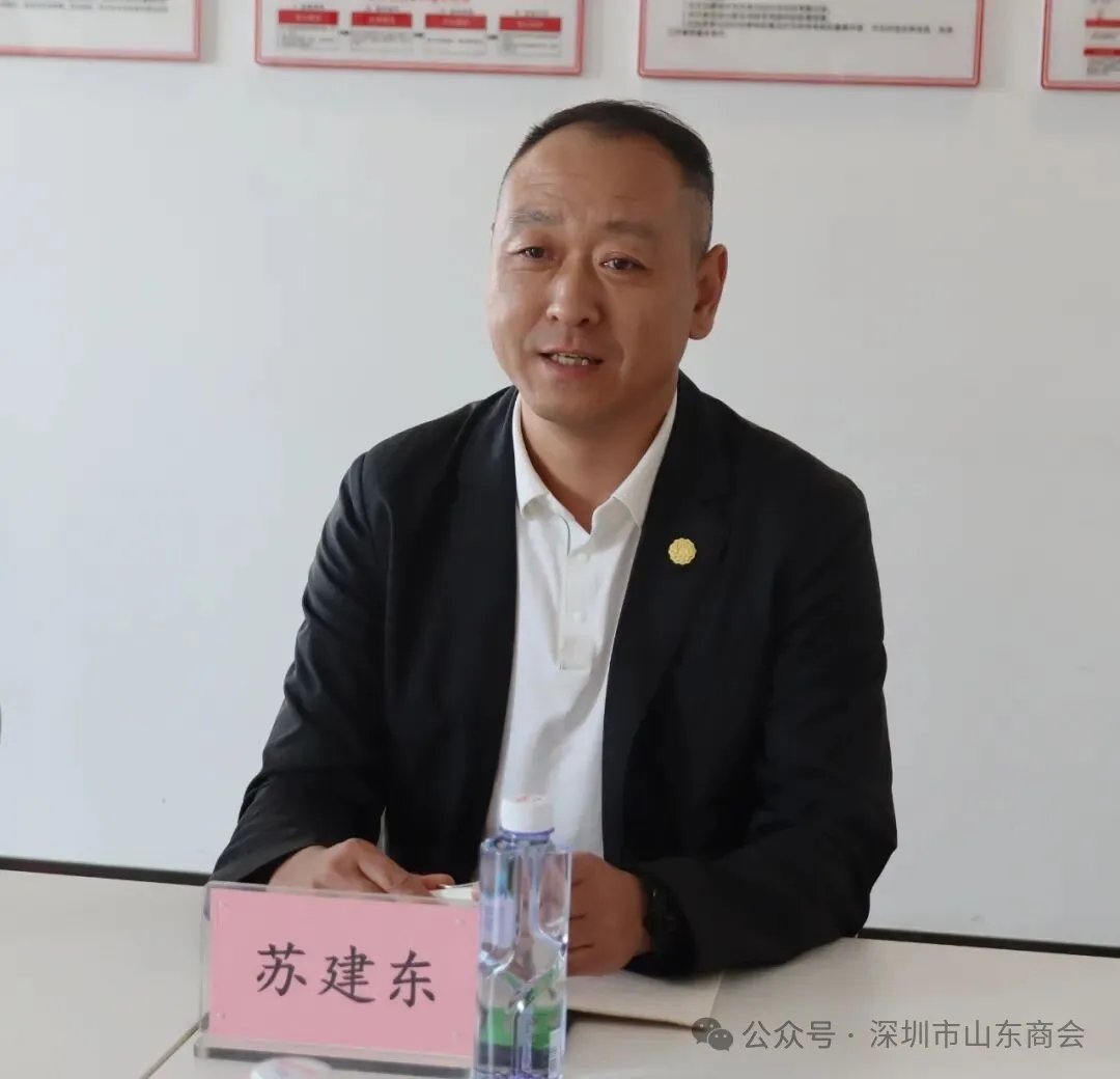 深圳市社会组织总会执行会长苏建东对领导一行的到访表示热烈欢迎,并介绍总会近期重点工作方向。他强调,总会正全面落实深圳市民政局“七个一”行业协会服务包要求,当前重点推进三大赋能行动:一是合规化建设行动,承接社会组织合规化建设项目,为全市社会组织提供等级评估辅导、矛盾纠纷调解等专业服务,助力行业规范发展;二是供需对接行动,定期举办专业性、产业经济专场对接会,精准匹配供需资源,促成产业深度合作;三是能力提升行动,通过“对话5A”系列活动,系统学习总结5A级商协会运营经验,赋能社会组织能力建设。苏建东会长明确,总会将积极支持发挥异地商会桥梁纽带作用,在政策解读、资源对接、品牌建设等方面提供全方位服务,包括开放平台资源、共享产业集群数据库、联合开展政策培训等,助力商会在鲁深合作中实现新突破、展现新作为。